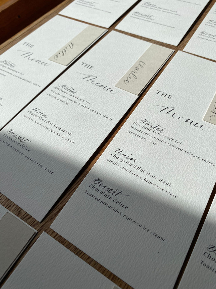 From welcome signs to place names, table menus and plans, I offer bespoke creations that reflect your unique love story and suit your personality! All of my signs are handwritten and printed stationery options will have handwritten or hand drawn elements such as a guest name, or a beautiful botanical drawing.